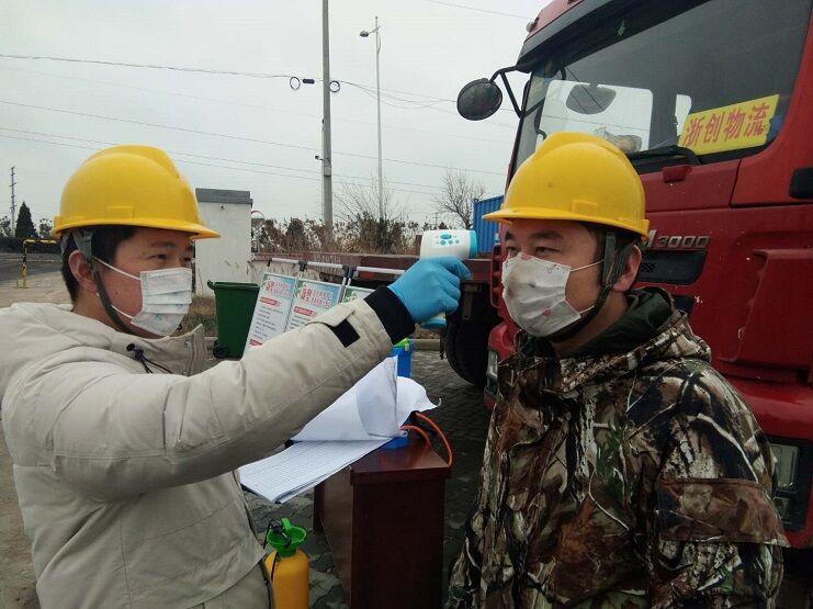 宵洋物流公司为员工提供口罩等防疫用品,要求员工在上下班期间必须佩戴口罩。每天早上定时定点为上班的员工测量体温,对员工体温、健康等情况形成动态监控。进入码头的车辆必须经过消毒,车辆驾驶员实名制登记并测量体温,告知非必要情况下,禁止下车。统筹解决好来料、人员、运输等各个环节,保障复工顺利,办公室等办公场所加强通风换气,并经常进行消毒,确保防疫责任和措施落到实处。