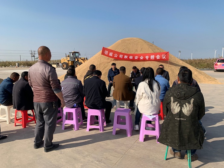 11月8日,明威公司在二湾分公司稻谷晒场,召开秋收安全生产工作专题会议。分析当前安全生产工作形势,部署秋收期间安全生产工作。