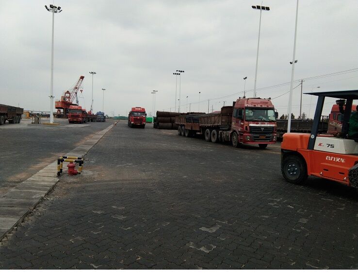 新年伊始,宵洋物流公司钢材存储迎来高峰。为了预防春节过后出现钢材短缺的情况,上海建发等客户大量增加在宵洋码头的钢材存储量。每日装载钢材的车辆络绎不绝,钢材单日最高入库达到一千吨。宵洋物流公司面对钢材存储高峰严阵以待,确保及时卸货。