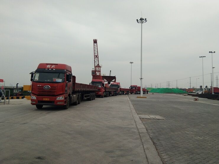 随着江苏省境内复产复工的开始,省内道路交通逐渐恢复,宵洋物流公司抓住战机,积极发展客户。装载着弹簧扁钢特种钢材的车辆络绎不绝地驶入码头,直接装船。这将大幅度降低码头仓储压力,提高码头的运转能力。这也是码头首次钢材进行船运,打破以往车辆运送货物的局限性,大大增加码头的吞吐量。