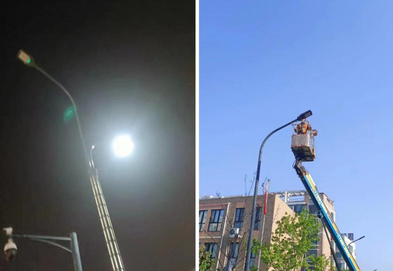 市政工程路灯更换维修现场。朱文江带领的小组,他们顶着月色进行路灯巡查,发现需要维修的记在本子上,然后第二天再进行维修。周而复始,不厌其烦的做着这些工作,就是为了确保工程最后顺利验收,确保路灯更换尾款的顺利收取,更好的完成二季度的各项目标任务。