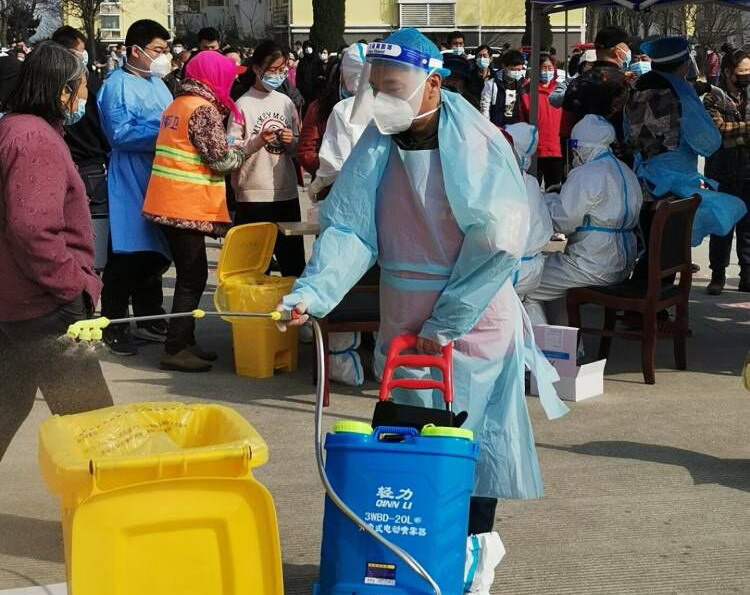 霍正钢,志愿者队伍的一员,也是这支志愿服务队伍中的中坚力量。他,心中有大爱,在海州湾党支部37日发出“驰援社区,共同抗疫”动员令后,他第一个站出来:“疫情就是命令,防控就是责任。身为党员,我理应模范带头,支持新冠肺炎疫情防控工作。”他不仅是这样说的,更是这样做的,在昌圩社区每一次的核酸检测中,他专挑“急、难、险、重”的活。比如消杀工作,这是一个体力活,需要背着足足有20公斤重的消毒液,来回不停的走动,不断的添加消毒液。有几次,核酸检测从早上8点一直持续到晚上8点,足足12个小时,而消杀工作的时长都达到14个小时,不仅是检测过程中,开始前和结束后的一小时都要消杀到位。14个小时下来,霍正钢同志穿着密不透风的防护服,里面的衣服湿了又干,干了又湿······。当大家看到他口唇干裂的都掉了皮,问他:“你是没有喝水吗?”“不能喝水,忍着吧,喝水就得上侧所,耽误时间,这波病毒隐匿性强,传播速度快,不能有一丝懈怠。”他憨厚的说着。