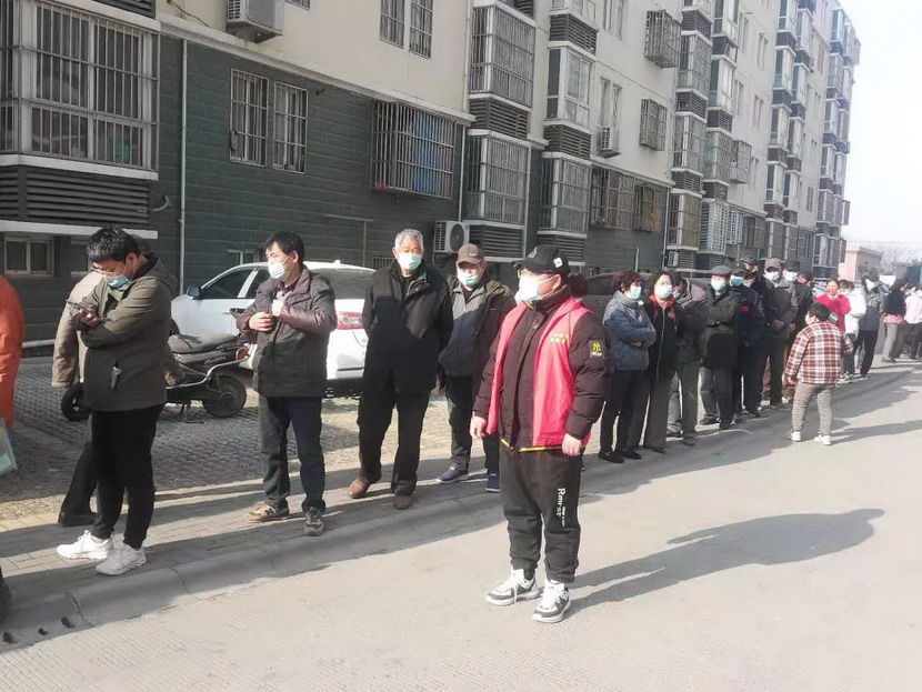 ▲翔立分公司党支部副书记姜海洋引导群众核酸检测