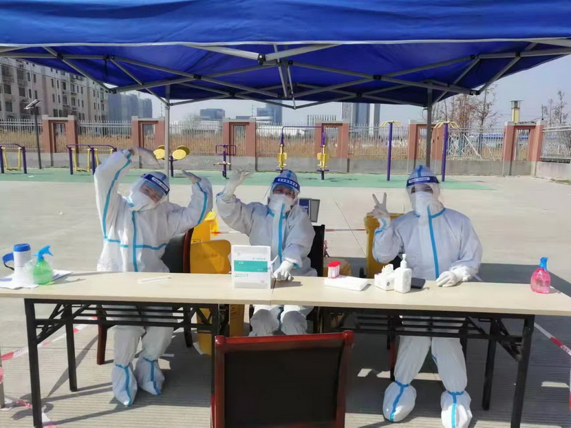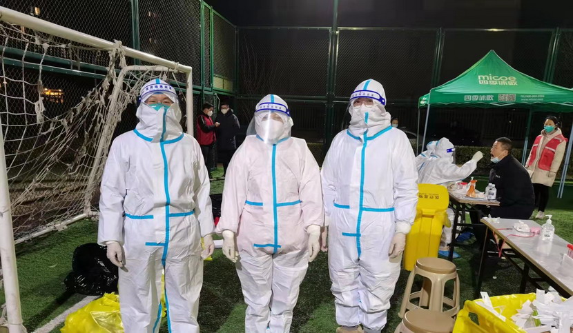 志愿服务篇。“现在我们是封控区,不能出去给政府添乱,闲也是闲着,所以社区一招手我们就来了”这是台北女工委副主任宋文静的一席话。这波疫情来的突然,紧急核酸检测紧缺志愿者服务。在公司”战疫情、争贡献“主题实践活动感召下,她已经在小区担纲核酸检测志愿者有两个夜晚了。而这一幕决不只在海州主城区,在开发区昌圩社区,台北志愿服务队已经成为社区防疫主力。疫情伊始,台北下属海州湾公司党支部一班人就已经奋战在社区防疫一线。党支部副书记苏玲、女工胡超,与专业医护人员一道,穿上厚重防护服,直接站在核酸检测最前线,这一站就是12小时。值班后稍作休息他们就又联系总经理霍正钢,翔立党支部副书记姜海洋,入党积极分子朱文健等参与联防联控,担当疫情义务宣传员。